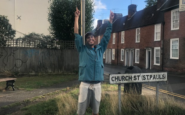 A couple of weeks ago Harry and I walked from a roundabout near Whitstable to Dover as part of Amos Trust’s Just Walk Again campaign. In 2017 we went to run the marathon in Bethlehem with the intention to do it together, but I was ill and ended up having to abandon the race about nine miles in. This time we decided we would walk a marathon, most of it along the start of the Via Francigena which is a pilgrimage route from Canterbury to Rome, marked by a little monk and some European stars.