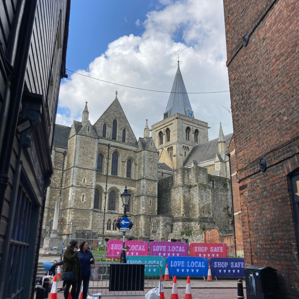Three years ago I cycled from Margate to Ealing following NCNs 15 and 1, which was just over 110 miles and went all round the houses. This time I decided I’d be more direct so used Strava Routes to plan the way there. I crossed the Thames at Vauxhall Bridge, headed for Shooters Hill, and then went down the A207 through Crayford and Dartford, followed a cycle path alongside the A2 which was not that pleasant, stopped for lunch in Rochester (photo above), diverted along the edge of the Medway in Gillingham which was gorgeous, joined the A2 through Rainham, Sittingbourne and Faversham and then headed up towards Seasalter and Whitstable to join the Viking Trail coastal route to Margate – 88 miles in total. It was not a bad route – quite a lot of traffic on the main roads but enough rivers, cycle paths and coast to compensate, and chips at Herne Bay to keep me going. The Viking Trail was mostly heading into the wind and I was definitely trundling towards the end, but it was a very satisfying day in glorious sunshine and I got there in time for a deep, hot bath before heading out for supper outside while the sun set over the sea.